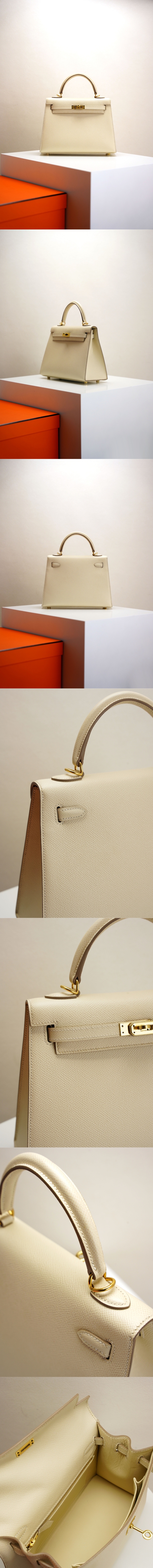 商 品 名: 【エルメス HERMES】ケリー 25 アイボリー ホワイトエプソン ゴールド金具(100%手縫い)